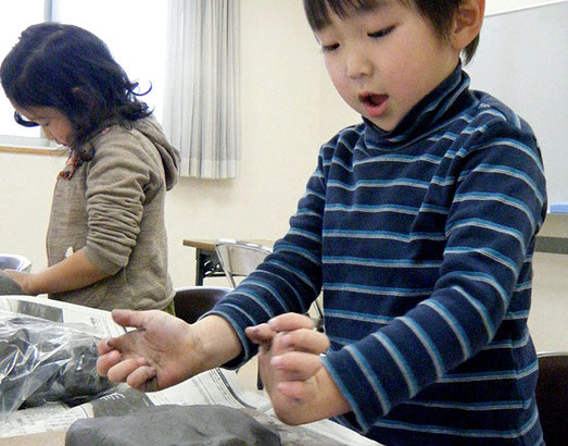 まずはねんどを丸めたり、平らにのばしてみたり・・