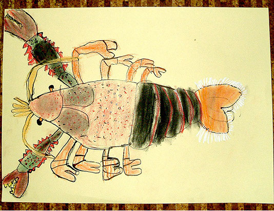 “ザリガニを描こう” 大きなハサミに手足がたくさん・・よく見たらその先にも小さいハサミがたくさんついています^^ 新鮮な驚きをもって楽しく描いているね。