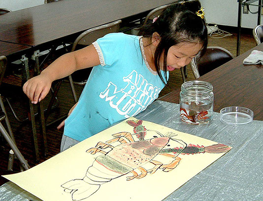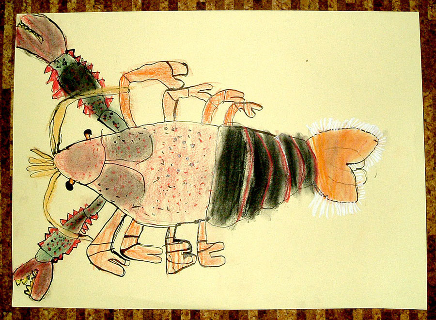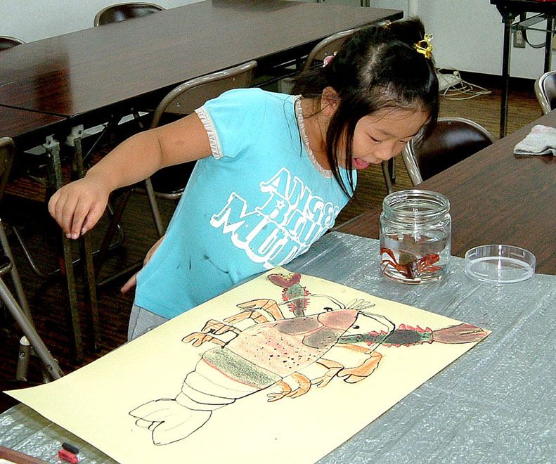 ”写実_ザリガニを描こう” 本物のザリガニを見ながら、驚きと新鮮な発見を感じながら、素直に描いています。色の変化までも見事に現されていて魅力的です。