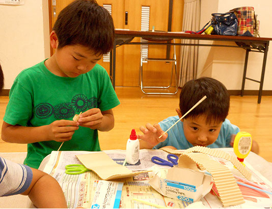 ”ダンボール工作”でお城をつくりました。 レンガや屋根のとんがりなど、特徴がよくとらへられた、迫力あるお城です。