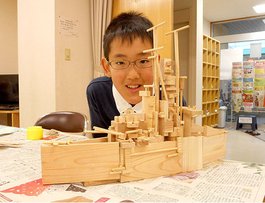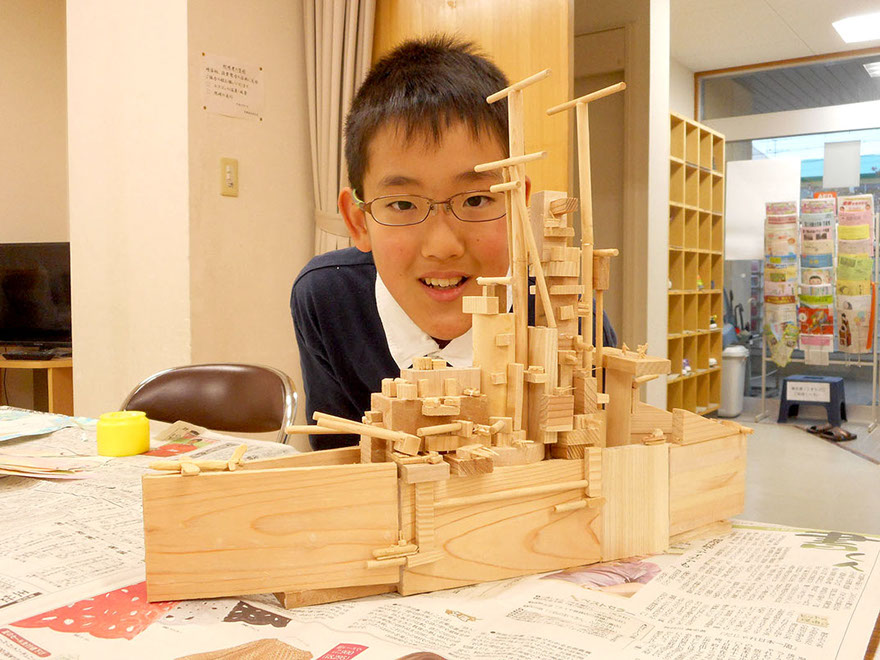 設計図のない、いろいろな木の破片から、こんな繊細な戦艦を造ってしまうなんて。。すごい!
