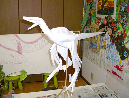 「立体紙アート」 大好きな恐竜とはいえ・・設計図もなにもなく、ただの画用紙だけで造っていきました。びっくり!!見事です。