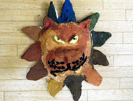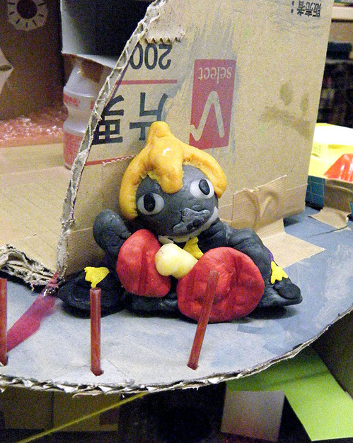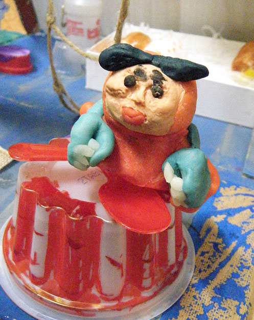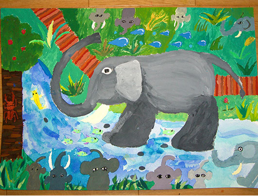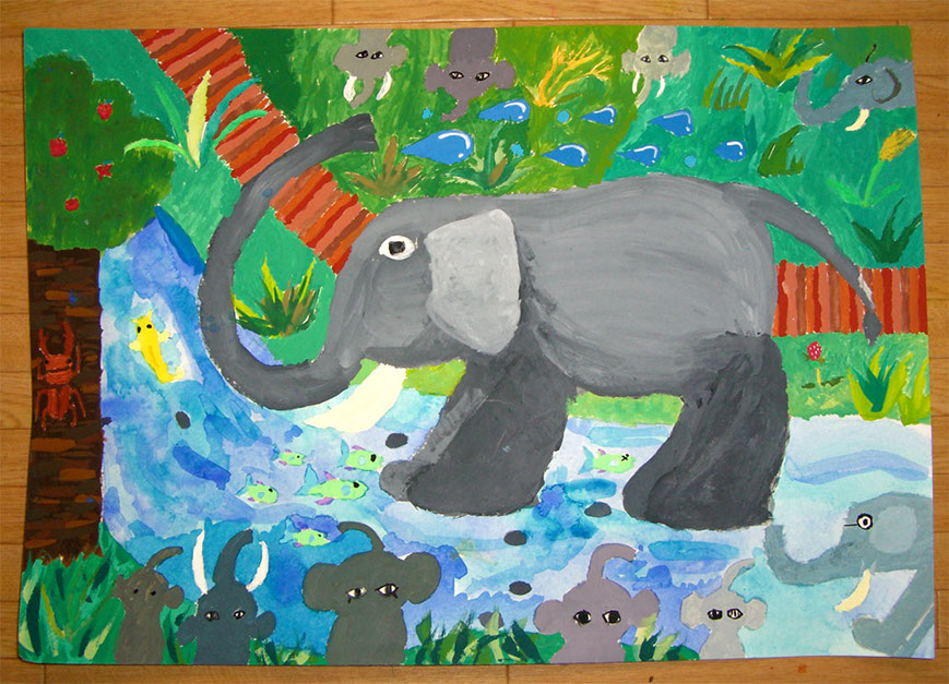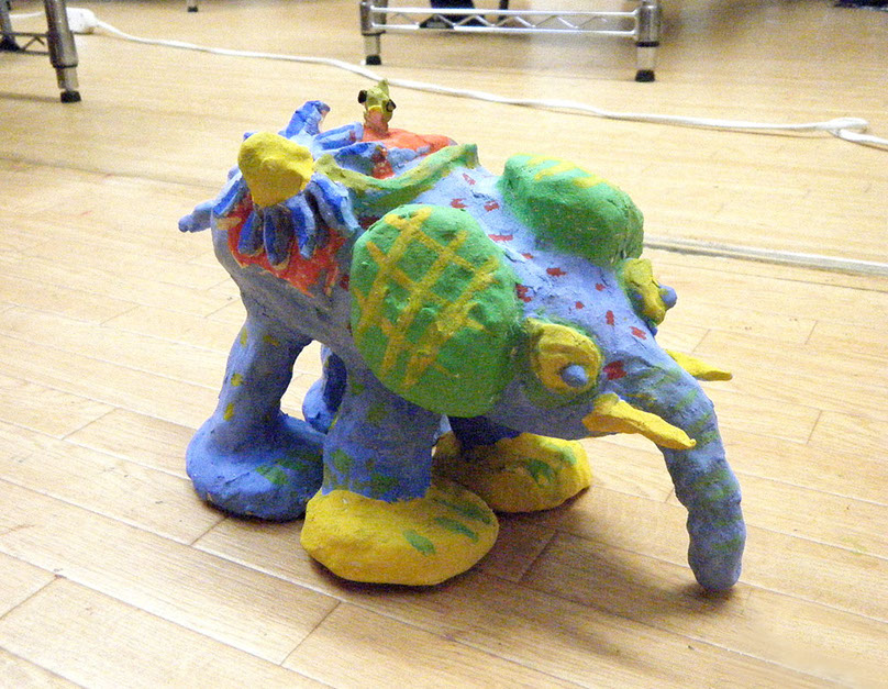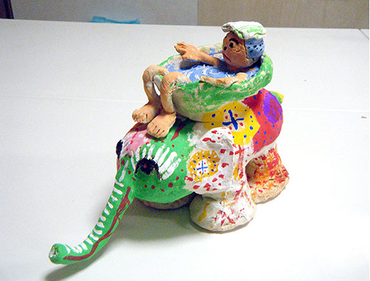 「ゾウの立像」 ゾウの上にお風呂に入ってくつろいでいる人がいる??^^発想がとっても豊かで素晴らしいね。
