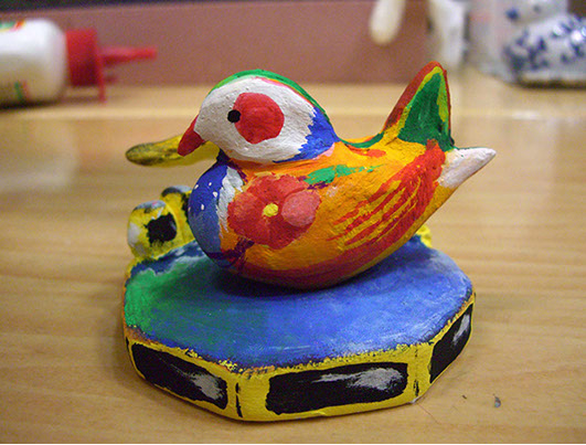 「何かがのっている手」 自分でポーズをつくり粘土で現してみました。想像で造られた上にのっている鳥も自然に現されており、形態感が見事です。