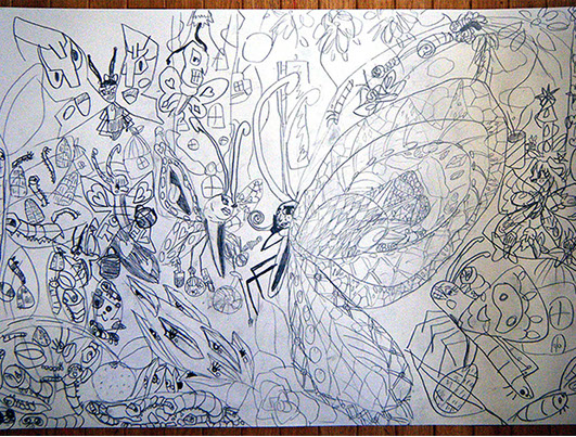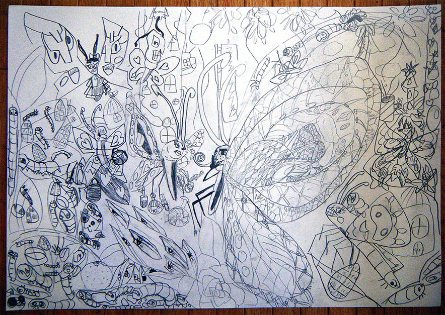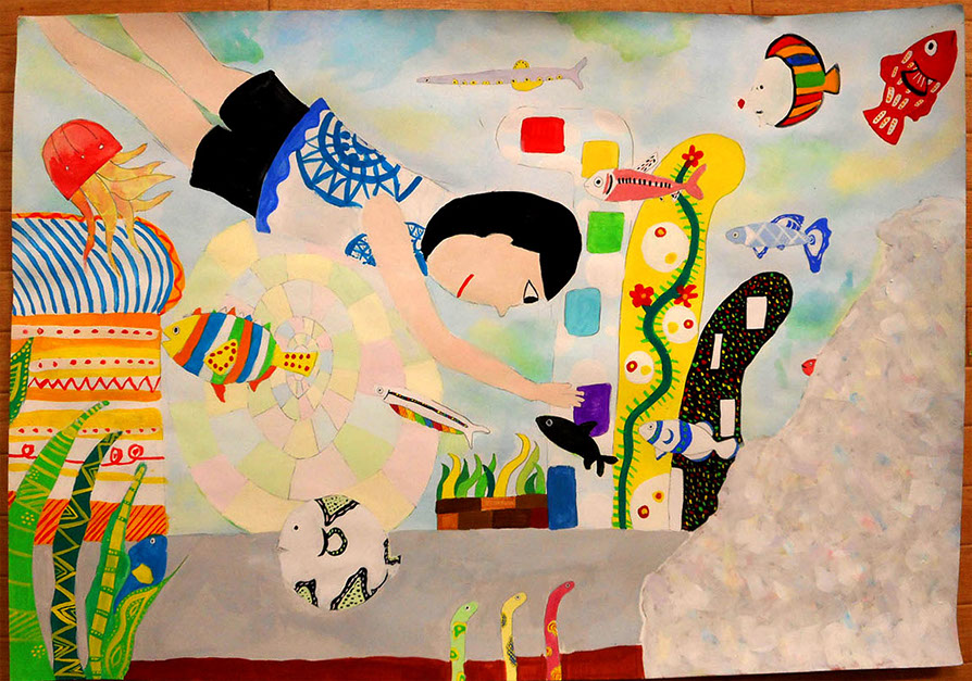 「自分のいる世界」 模様あそびが独特でおもしろいね。不思議な世界が広がります。