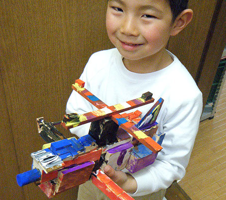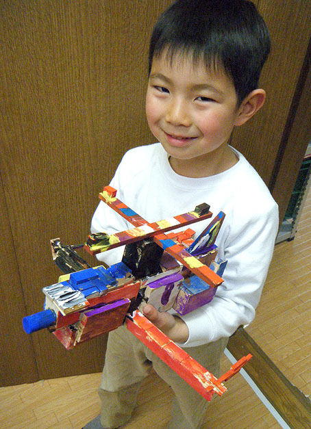いろいろな木片を組み合わせ、飛行機をつくったね。かっこいい