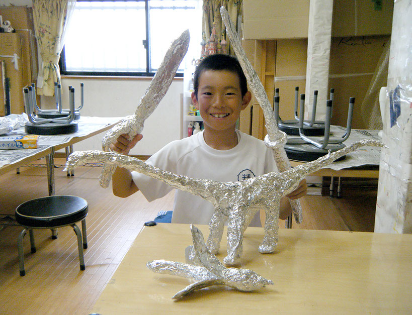「ホイルアート」 アルミホイルだけでできてるとは思えない恐竜。。かっこいい ホイルで変幻自在だね。