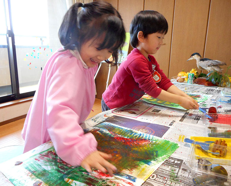「ローラースタンプあそび」 凸凹ローラーや、もようスタンプ楽しいね^^”さいごは手でも描いてみちゃお!”